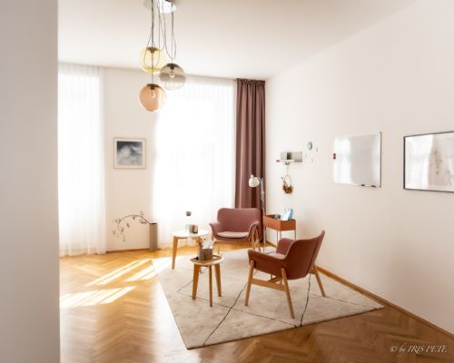 PraxisraumIn meiner Praxis stehen zwei Räumlichkeiten zur Verfügung. In diesem finden die Gesprächssitzungen statt. Es gibt auch die Möglichkeit auf der Entspannungsliege Platz zu nehmen, falls einmal hohe Anspannung besteht oder Entspannungsübungen erarbeitet werden.