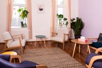 Unser großer heller Praxisraum in der Schwaigergasse 35. Gemütlich, klar, ruhig. Richtig gut geeignet zum intensiven Arbeiten.