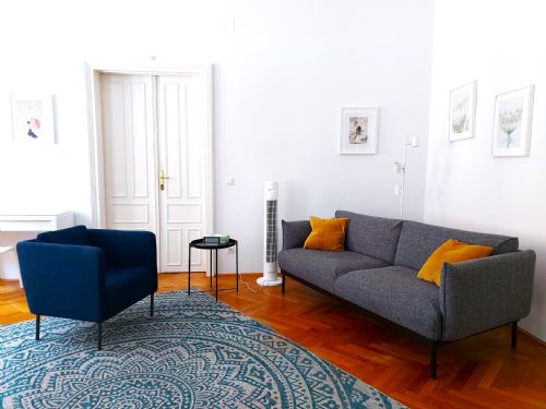 Der angenehm helle Praxisraum, ruhig im 3. Stock gelegen, angenehme Altbau-Höhe, hier lässt es sich gut und sicher mit Einzelpersonen, Paaren, kleineren Teams und Gruppen arbeiten.