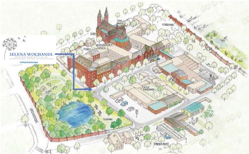 Im Erdgeschoß des Osttraktes der Donau-Universität Krems (Altbau, linke Bildseite) befindet sich das Zentrum für Psychosoziale Medizin und Psychotherapie.