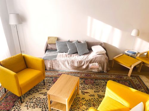 Ruhiger, geschützter Seminarraum für Familien- und Gruppentherapie, Selbsterfahrungs-WE, Aufstellungsarbeit und Gesundheitsförderung. Großzügiger Pausenraum mit Teeküche und Sanitärraum. 200m zum Augarten. 250m zur U2 Taborstraße. Garage in der Nähe.
