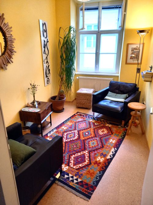 Mein Praxisraum ist ein heller, gemütlicher Ort, an dem man sich sofort wohlfühlt und zur Ruhe kommen kann.