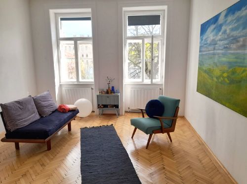 Der Praxisraum ist ruhig, meist sonnendurchflutet und bietet eine angenehme Atmosphäre auch für Gespräche und zum Runterkommen.