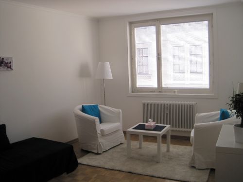 Unser großer heller Praxisraum in der Schwaigergasse 35. Gemütlich, klar, ruhig. Richtig gut geeignet zum intensiven Arbeiten.