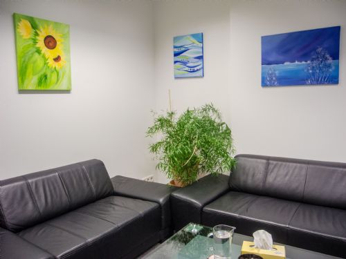 Der größere Raum: geeignet und ausgestattet auch für Gruppenarbeit (bis ca. 12 Personen) sowie für Kinder und Jugendtherapie.