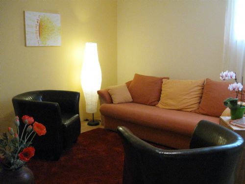 Der Praxisraum ist ruhig, meist sonnendurchflutet und bietet eine angenehme Atmosphäre auch für Gespräche und zum Runterkommen.