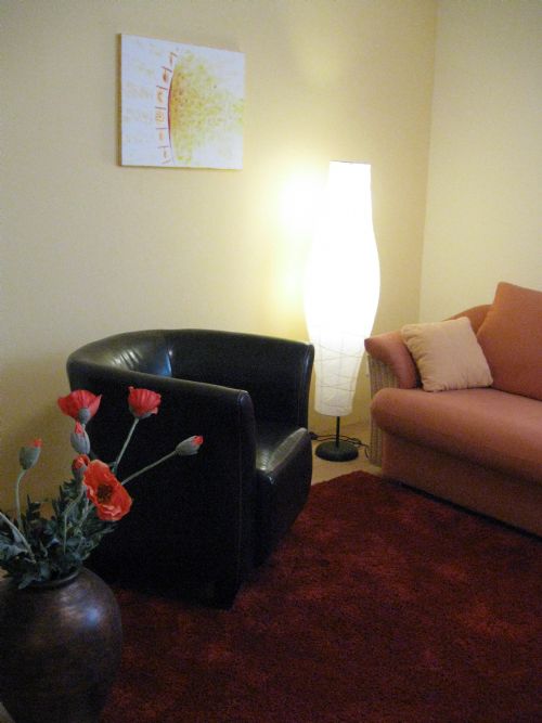 Der Praxisraum ist ruhig, meist sonnendurchflutet und bietet eine angenehme Atmosphäre auch für Gespräche und zum Runterkommen.