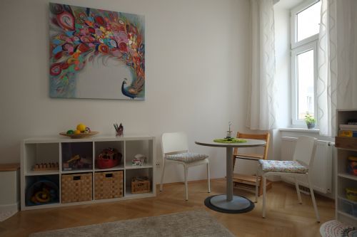 Bei der Gestaltung des Praxisraumes waren mir freundliche Farben und Gemütlichkeit wichtig. Ich bin überzeugt, dass das Wohlbefinden im Raum für die Therapie wichtig ist.