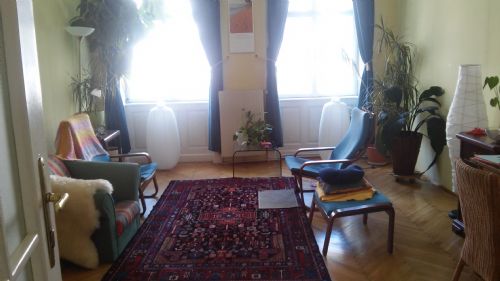 Mein Praxisraum ist ein heller, gemütlicher Ort, an dem man sich sofort wohlfühlt und zur Ruhe kommen kann.