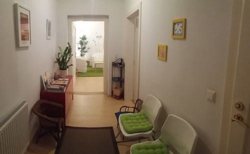 Großes Wartezimmer mit Nespresse-Kaffeemaschine