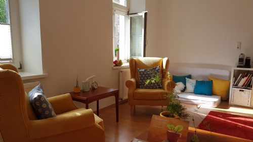 Es ist eine sehr heimelige Praxis im Ortsteil Höflein an der Donau direkt an der S-Bahn-Strecke nach Wien. Der Raum strahlt Wärme aus. Menschlichkeit wird GROSS geschrieben.