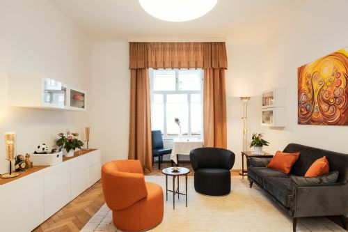 Gemütliche Praxis in Salzburg-Nonntal, geeignet für Einzeltherapie und Paartherapie. Gute Anbindung an Öffentliche Verkehrsmittel und Parkplätze in der näheren Umgebung.