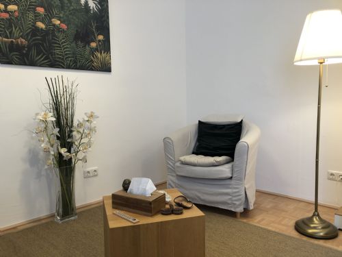 Mein Praxisraum ist ein heller, gemütlicher Ort, an dem man sich sofort wohlfühlt und zur Ruhe kommen kann.