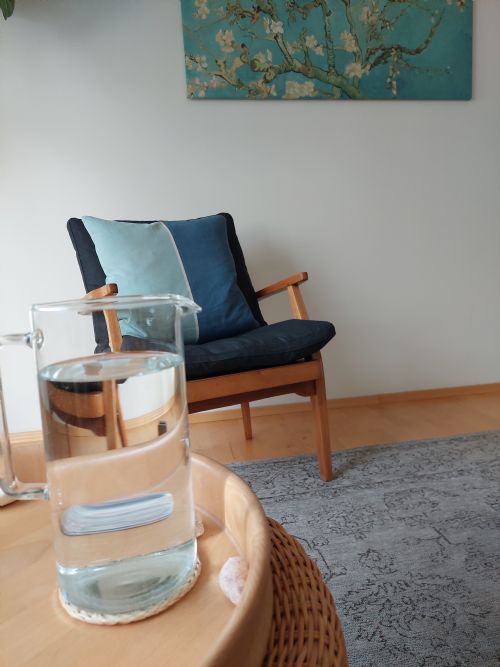 Praxisraum 2 ist für Einzeltherapie (Coaching, Supervision, Training), oder von der Personenzahl her, maximal für Paartherapie (Coaching) ausgelegt. Die Einrichtung ist speziell Hypnose-geeignet.