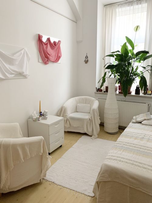 Mein Praxisraum ist ein heller, gemütlicher Ort, an dem man sich sofort wohlfühlt und zur Ruhe kommen kann.